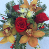 A traditional, yet elegant centerpiece, perfectly, adorned with velvety red roses and ilex berries. Designed to add the perfect touch of elegance to the Christmas dinner table.