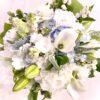 Lavender roses, orchids, dahlias, and wild seasonal accents assembled with colourful gourds to delicate fall berries. In shades of pink, purple, white and yellow, this floral captures a fairylike orchard’s charm with a touch botanical whimsy.