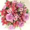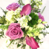 An eye-catching mixed duo plum and magenta seasonal flowers that radiate bliss. It’s a combination that’s exciting, filled with high energy, beautiful textures, and foliage. Chic, artistic, and beautifully designed in a ceramic container.