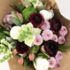 A beautiful bouquet of pink peonies and seasonal blooms. Who doesn’t love peonies? With their full sensuous shape and clusters of silky soft petals they are a favorite of many. Their short availability thru April, May and June only adds to the specialness of sending a bouquet of peonies. Note: if the season is finished we will happily substitute with ruffed garden roses.
