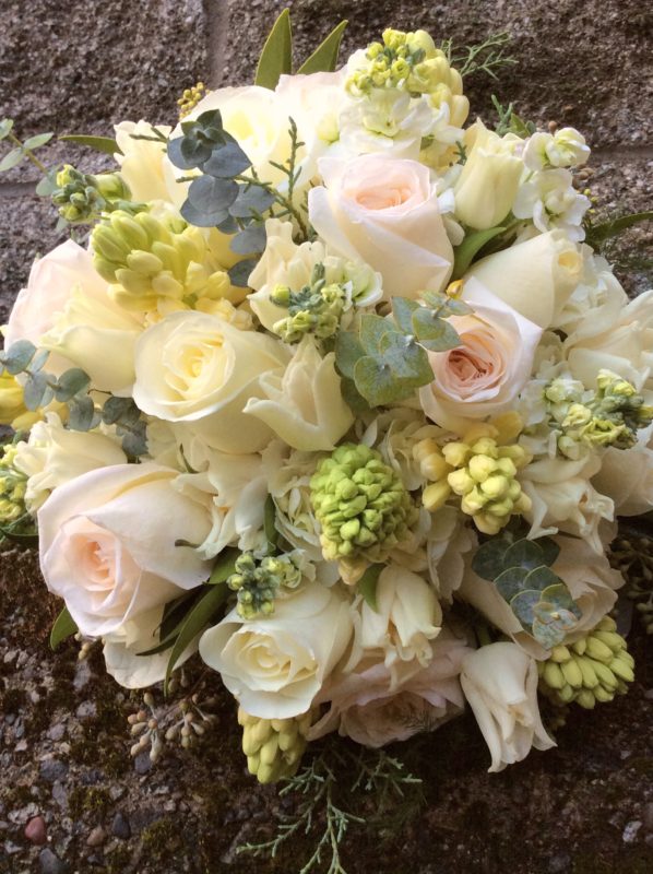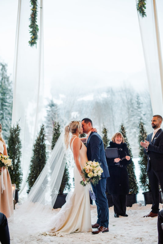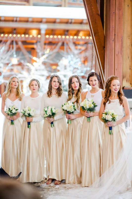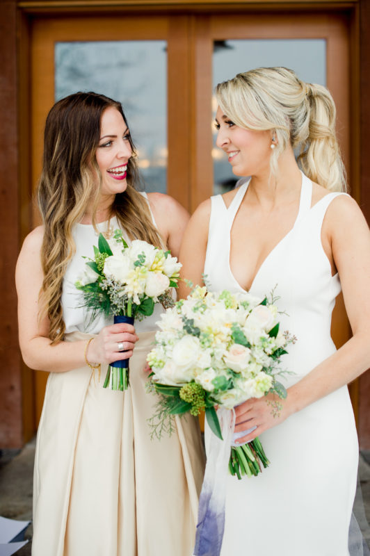 It is always wonderful working with a passionate, inspired bride to craft unique pieces indicative of a landscape and season. With a breathtaking venue, Nita Lake Lodge in Whistler, BC. this wedding was grounded in personality, feelings and emotion. Everything, from stem to stern, was personally detailed and planned. A total of 191 feet of fresh winter garlands were handcrafted for the décor and to run along communal style tables. In fact, magically it snowed on their wedding day.
